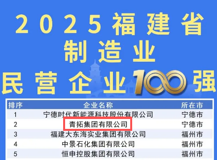 青拓集團均位列2025福建省民營企業百強 制造業民營業百強第2