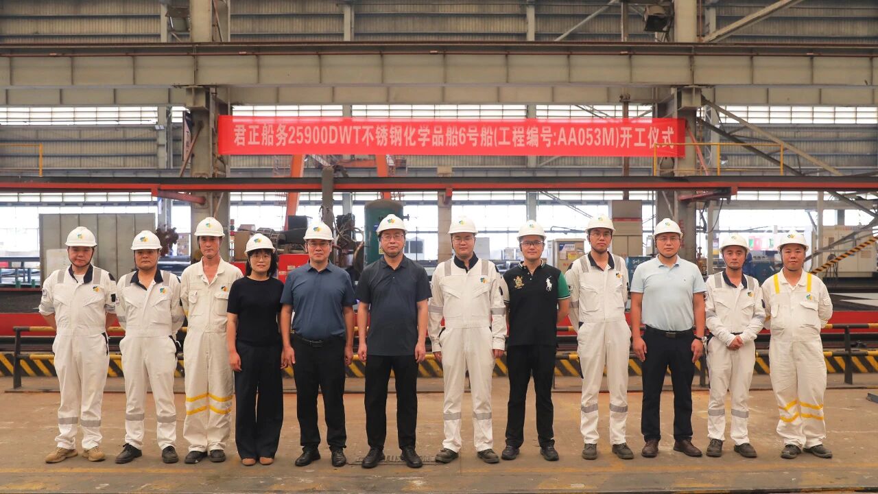 8月29日,君正船務(wù)與武昌船舶重工集團(tuán)有限公司(下稱(chēng)“武昌造船”)合作的25900載重噸不銹鋼化學(xué)品船6號(hào)船在武昌造船順利開(kāi)工。